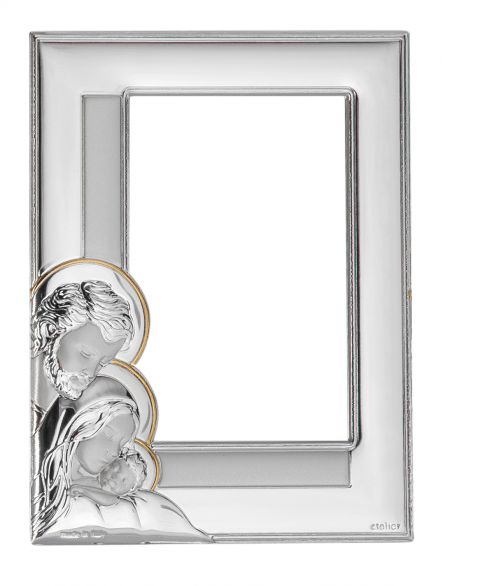 Ramka ozdobna z pozłacanymi elementami z wizerunkiem Świętej Rodziny.